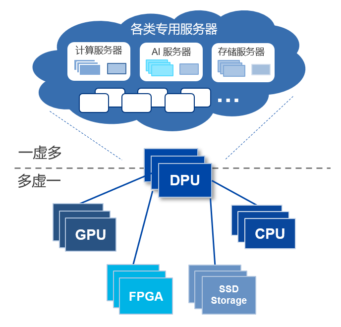 随着数据上云的持续深入,通信能力和计算能力成为数据中心基础设施的相辅相成的两个重要发展方向。若数据中心仅关注计算能力的提升,通信基础设施的提升跟不上,那么数据中心的整体系统性能依然受限,无法发挥出真正的潜力。DPU的提出背景正是应对这些数据量和复杂性的指数级增长,满足公有云将数据计算移至接近数据位置的需求