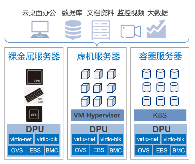 公有云是最广泛应用的算力基础设施,承载的业务和对网络的需求最为领先,因此对DPU的业务需求也最为多样。在各类前沿业务可能性中,星云智联认为,DPU产品解决方案应首先解决云计算最共性的业务需求,包括裸金属,虚拟机,容器等: